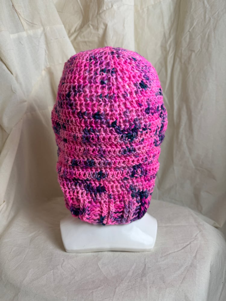 Hand-crocheted open-face balaclava made with high-quality natural wool made in Germany.