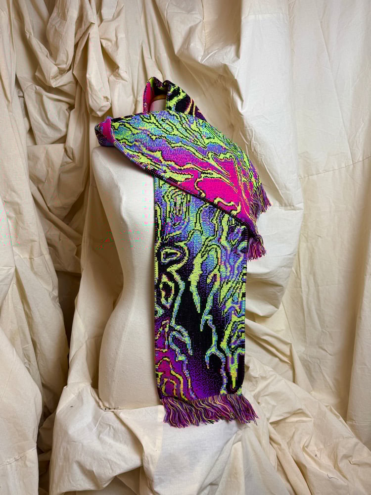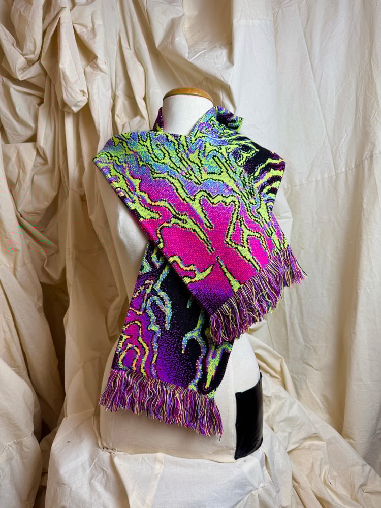 A vibrant statement piece featuring neon tones, gradients, and hand-drawn digital symbols.